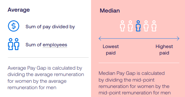 Female voice: This is the overall difference in the average and median pay between men and women doing the same or similar roles.