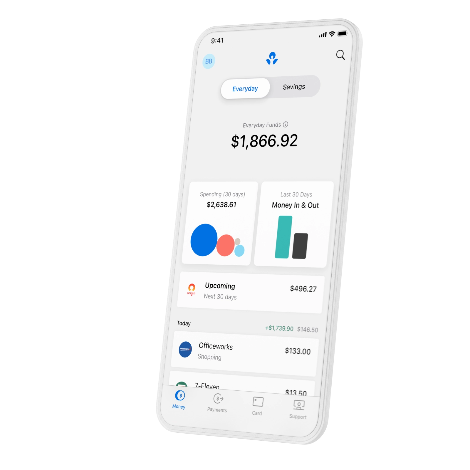 An ANZ Plus Everyday account comes with a linked ANZ Plus Visa Debit card which is accessible in the Everyday view of the Money tab.